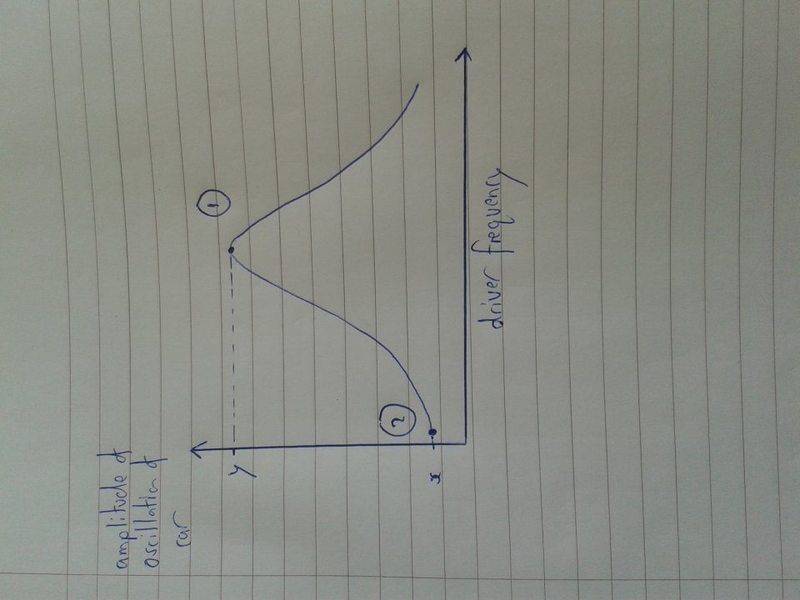 - Participants explore the relationship between the car's amplitude and the surface's oscillation frequency, questioning whether the amplitude follows the surface more closely at low frequencies or at resonance. There are also discussions about the interpretation of the graph, particularly regarding its right-hand tail and its implications.