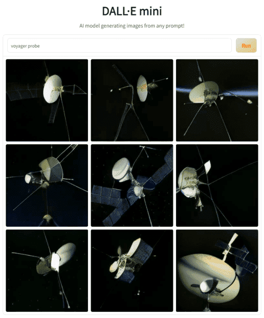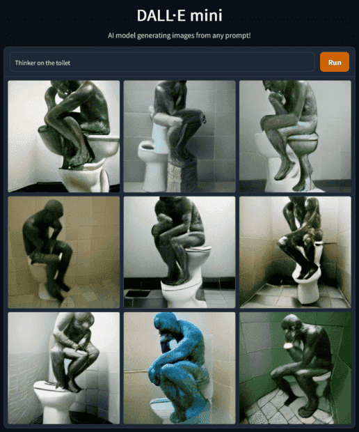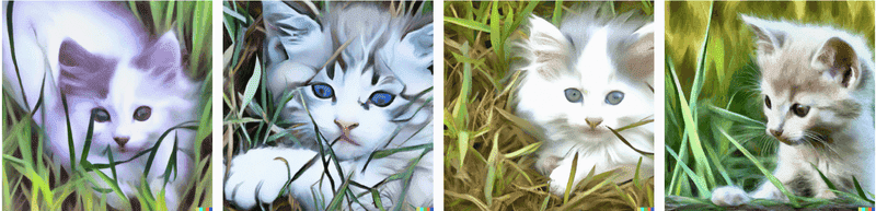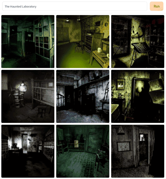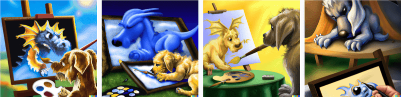 Here's a screenshot of the images generated by the input "cartoon spider walking a dog in the rain". I haven't checked to see if the same input generates different images each time.