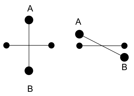 Positions A and B being the two possible positions of the large spheres.