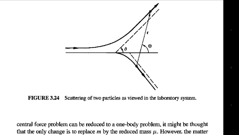 I have one problem with this question that I've been struggling with. Initially, the total energy should be given by E =m1* v0^2/2 (as U goes to zero, and m2 is at rest). However, if we write r = r1 - r2, we get E = mu*rdot^2/2 + U_eff(r), U_eff(r) also goes to 0, where mu is the reduced mass. However, rdot^2 is exactly v0^2 when r is infinity, as rdot = r1dot - r2dot = r1dot, since m2 is at rest. This seems to imply that m1 = mu, which makes no sense. What am I missing? If I assume that the first energy I stated is incorrect, I have no trouble with the rest of the problem.
