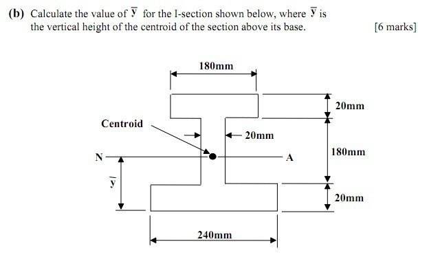 Calculate the value of Y-Bar for the I-section shown below, where Y-Bar is the vertical height of the centroid of the section above its base.