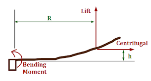 But when blade is rotating centrifugal force "straighten" blade so centifugal force basicaly "reducing" bending moment and this is reason why so tiny blades can hold so much load on it..