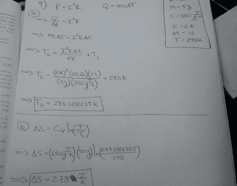 Consider a thermally insulated resistor with resistance R=20 Ω and mass m=5.0 g. The resistor is made of a material with specific heat capacity c=850 J/(g-K) and carries a current of 2.0 A for a time period of 1.0 s.