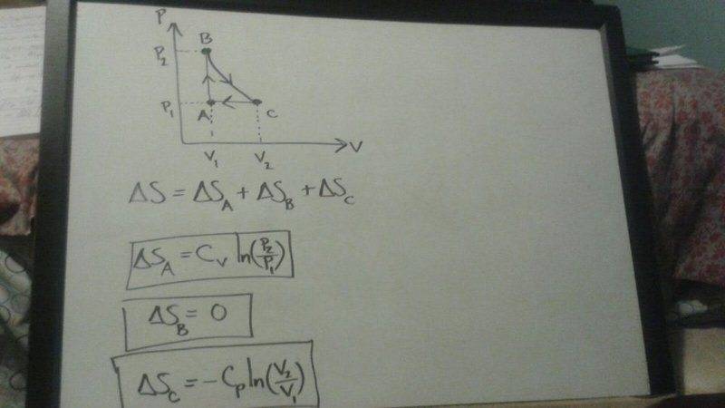 ΔS = CP*ln(V/V0) + CV*ln(P/P0)