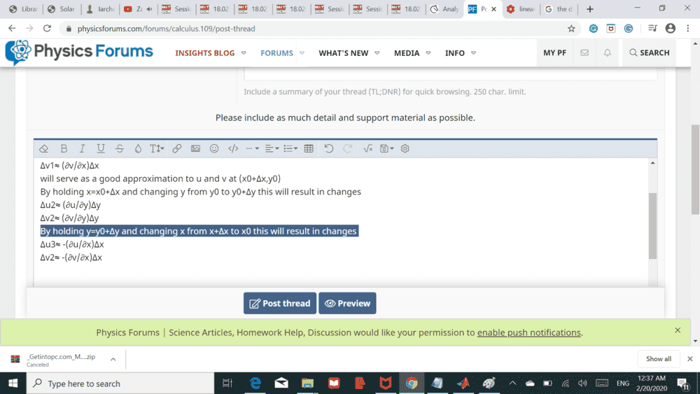 Δv2≈ (∂v/∂y)Δy The partial derivatives evaluated at (x0+Δx,y0)