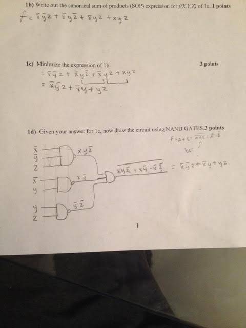 The discussion revolves around a homework assignment related to a SOP (Sum of Products) minimization circuit. Participants are checking the correctness of a circuit diagram drawn by one of the members and clarifying the implications of the assignment on grading.
