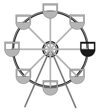 - Write and explain the free-body-diagram of the forces acting on a cabin of a Ferris wheel, in a uniform circular motion at the instant in which it's at the same height as the wheel's pivot point.