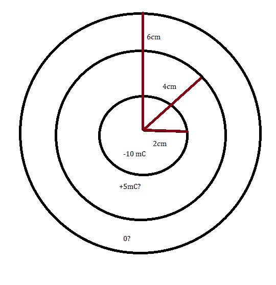 When radius is 3cm, charge enclosed is -10+10 +5? I'm unsure where the 5mC is here in this case.