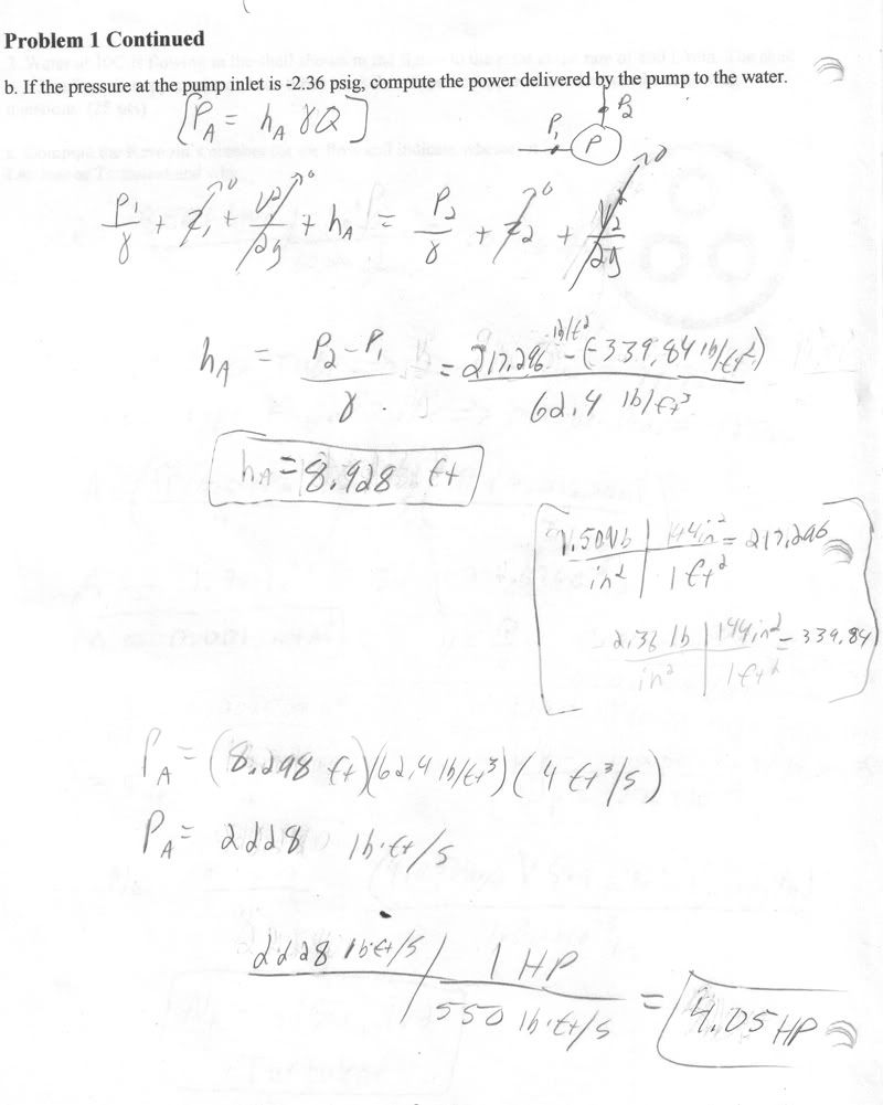 Also the next part of the question asks if the inlet pressure to the pump is -2.36 psi compute the power delivered by the pump to the water...How would I approach that?