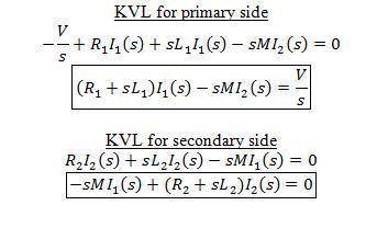 Hint: Use KVL loop equations formulated in Laplace notation.