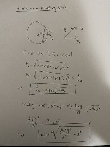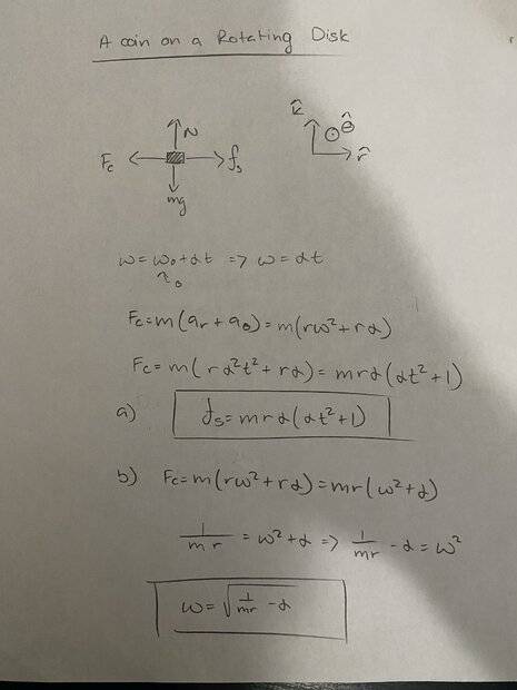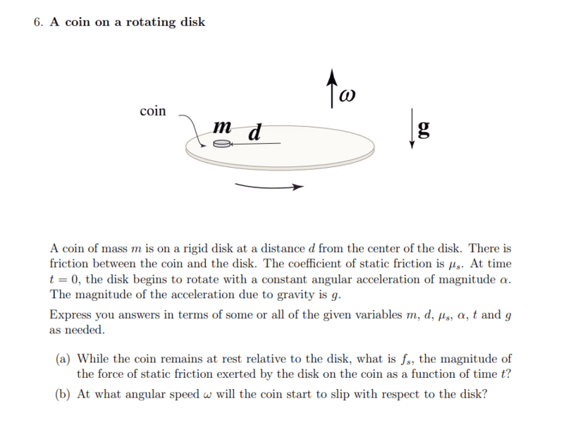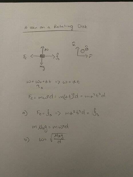 friction between the coin and the disk. The coefficient of static friction is µs. At time