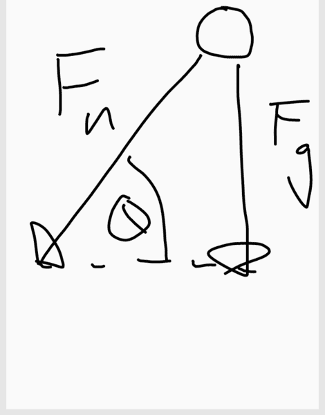 My reasoning is that Fn vertical component when equal to Fg will start to fall, so if i draw a vector diagram and take out the vertical component of Fc/Fn
