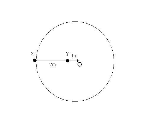 two spheres of equal mass are attached to a light wire of negligible mass of length 3 m ,as shown in the diagram attatched, the spheres and the rod are whirled about point O at a constant rate.