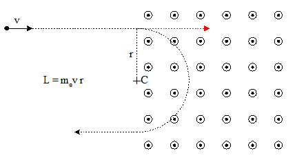 - Some participants argue that the electron possesses angular momentum even before entering the magnetic field, specifically about the future center of its circular arc.