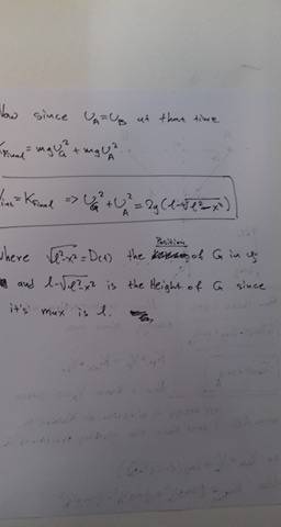 I know the only forces are From the rope. 2 on the G ball and 1 in each of the balls.I understant i have to apply conservation law of energy but how? What is the potential energy? And also How to calculate the forces. Is it like the 3ball acts like gravity would do?