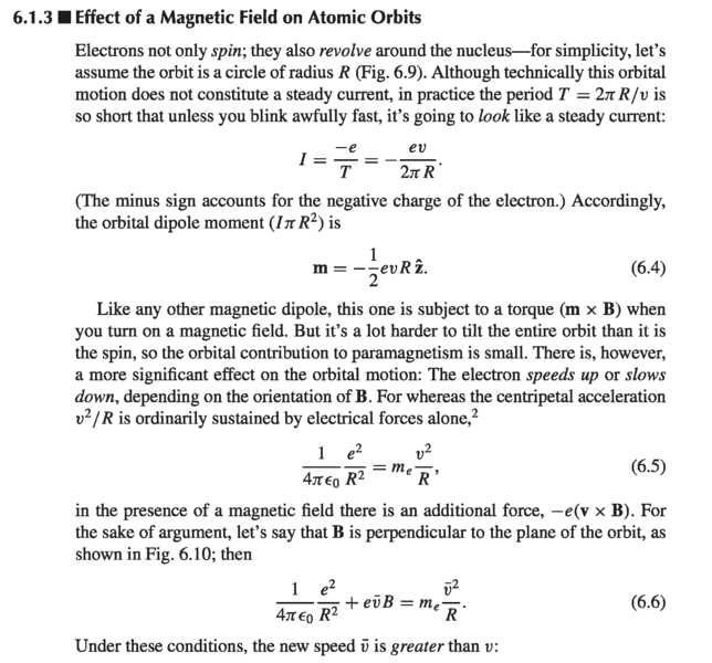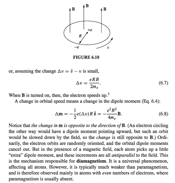 The discussion centers on the classical model of diamagnetism, specifically addressing the behavior of an electron in orbital motion when subjected to a uniform magnetic field. It highlights the discrepancy between treating the electron as a dipole versus a moving charged particle, leading to different interpretations of the net force acting on the electron. The conversation emphasizes that while the magnetic field exerts no net force on the dipole, the electron's motion in the field results in a Lorentz force due to its interaction with the magnetic field. The analysis concludes that the radius of the electron's orbit is influenced by the magnetic field, challenging traditional views of fixed orbital radii.