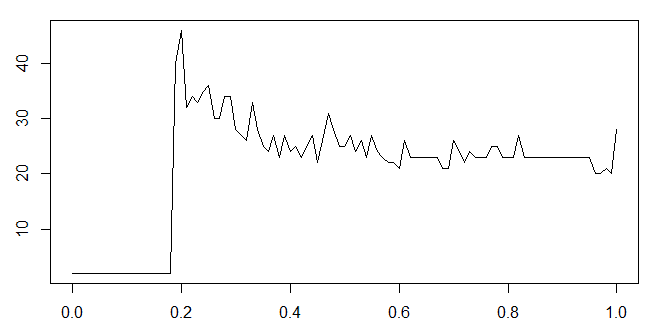 - A different participant describes the curve as resembling a step response followed by exponential decay, estimating a characteristic time of about 0.1 horizontal units and a saturation value of about 23 vertical units, while also noting a noise level with an amplitude of about 2 vertical units.