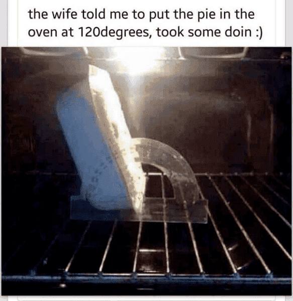 That's for sure, who leaves a protractor in the oven. It'll melt and mess up the cake.