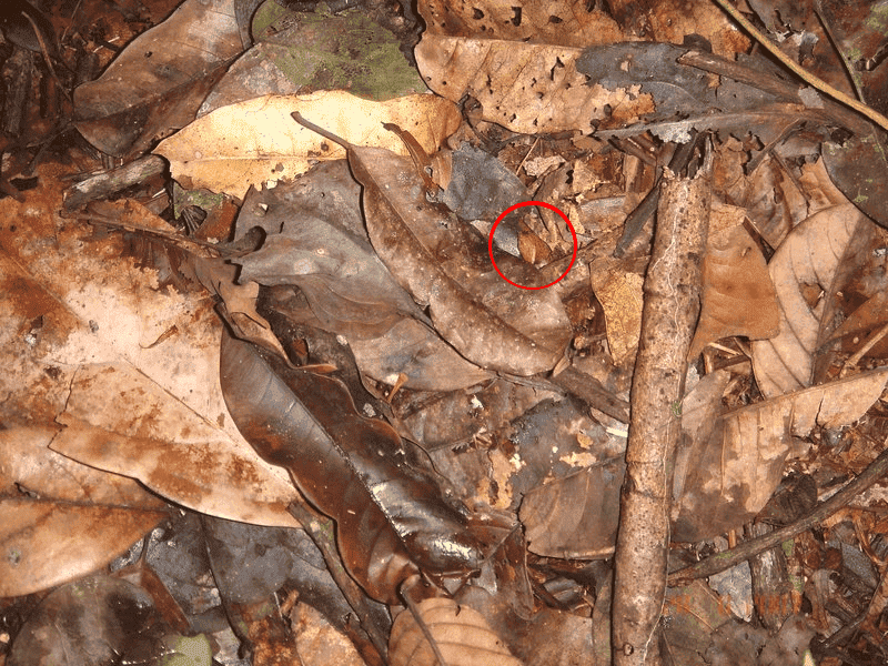 Ibix said:The only thing I can see that looks vaguely frog-like is about two thirds of the way across amd a third down. A small orange triangular region just above the right hand end of the large grey-brown leaf oriented top-left/bottom-right.