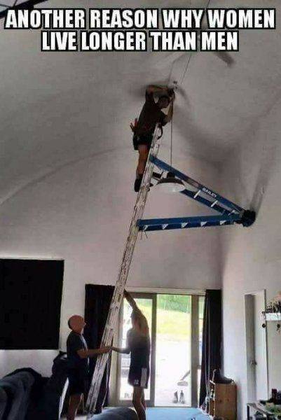 Yeah. They really need another stepladder cable-tied (!) to the side so it can lean against the back wall, for lateral stability.