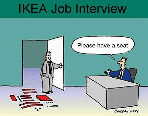 Man on the left looks way too nonchalant. 3 hours later he will be crying over the instruction manual trying to figure out where the 163rd screw for his Swedish Poäng chair is.