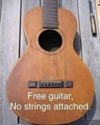 An excuse to recycle a joke I've told before on this site:jack action said:Free guitar, no strings attached