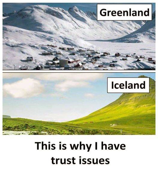 According to lore it was named Greenland as, essentially, a marketing ploy. So yes - do not trust.