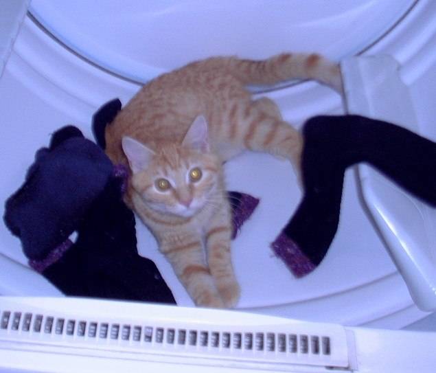 My friend's cat (yes, a ginger) used to love jumping in the top-loading washer as he was loading it.