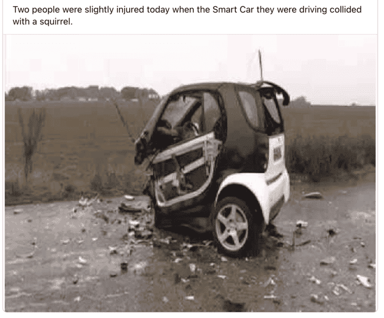The irony of course is that, in reality, it collided with an immovable concrete barrier at 110km/h.