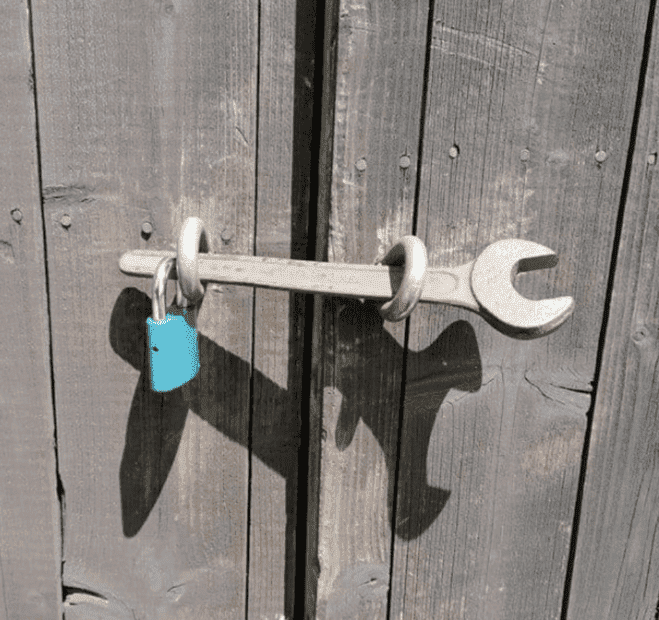The stories in that picture are "what on Earth are they doing with that spanner?!" and "ingenious solution to a problem with (presumably) limited resources". If you miss out either of those reactions it isn't funny. I saw the spanner and the padlock, but it took me a second or two to mentally shove the spanner left and right and work out that it does work, and the chuckle came then.