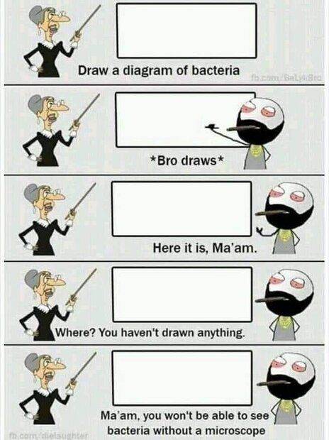 Careful who you try that on. I can think of a couple of teachers I had who would have produced a microscope, checked for a diagram, and then told him off while the rest of the class jeered at him...