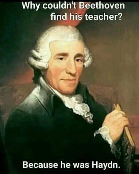 I am sick of Haydn, Bach, etc. jokes. I had to read three of them just today. We do not speak about Troomp, Beeden, Toucher, or Yonsohn either. Why can't English speakers at least try? Start with Italian names, then French, and then German ones.Baluncore said:No matter how you pronounce a composer's name, there will be some village in Britain where the pun intended is the accepted pronunciation. Indeed, I like to guess the county or region in which the pun originated.