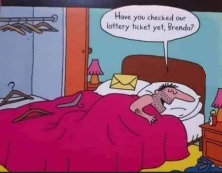 Wife: "Oh my God, Honey! Bag your bags! I won the lottery!"