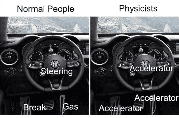 Even more pedantic: Newton's 1st (clutch), Acceleration, Acceleration, Acceleration.
