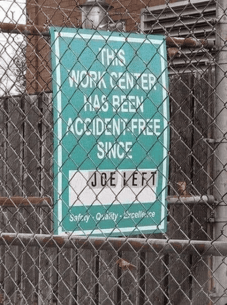 After lunchtime, someone added a note: "Your wife called in. She wants her sign back!"