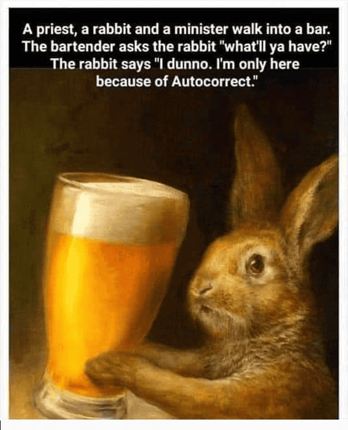 A priest, an imam, and a rabbit enter a blood bank to donate. The receiving nurse asks for their blood type:nsaspook said: