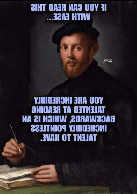 My mother, a second grade school teacher, developed the useful skill of reading children's handwriting upside-down.fresh_42 said:.ʇɥƃᴉɹ ǝɹɐ noʎ pᴉɐɹⅎɐ ɯ╻I