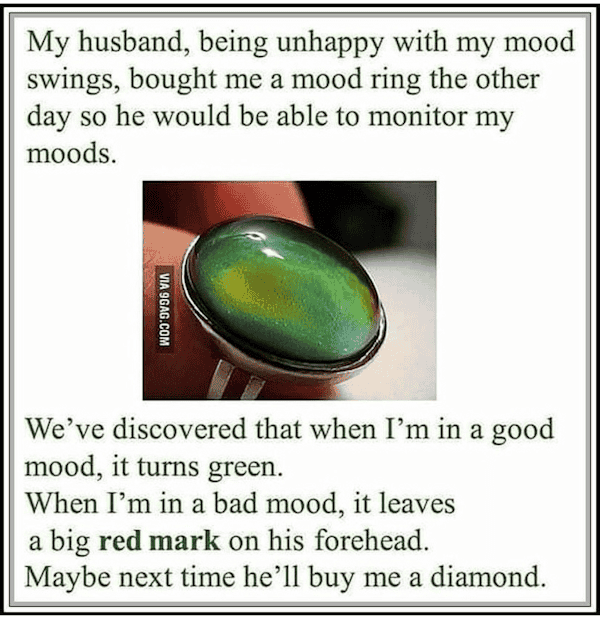 I thought all the mood rings had lost their power. Like, oh, 35 years ago?phinds said: