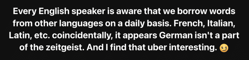 The modern Angles are not as much borrowing from German, but rather trying to recollect their ancestral tongue. Only they're very coy about it, being ashamed of their horrible French accent they picked up from the Swedes.