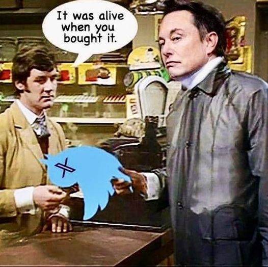 "'E's off the twig! 'E's kicked the bucket, 'e's shuffled off 'is mortal coil, run down the curtain and joined the bleedin' choir invisible!! THIS... IS AN X-TWITTER!!"