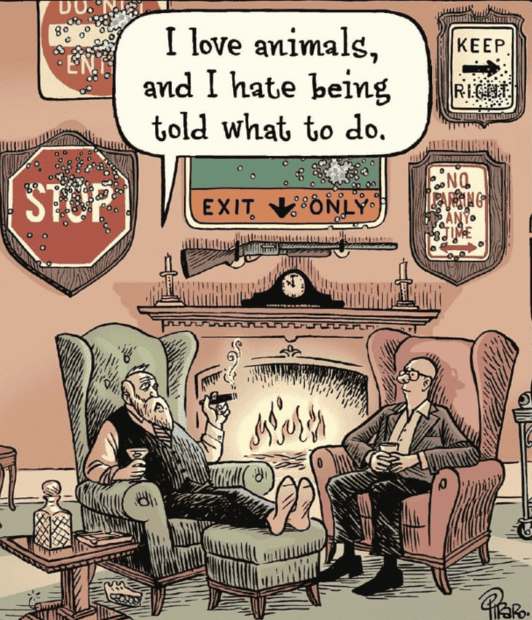 There's a conundrum with the sign, "Do not pet the animals behind this sign".