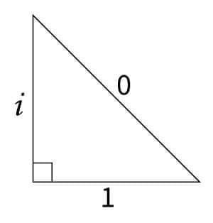 Since i is along another dimension, perpendicular to the real plane, the projection of the triangle on the real plane looks like a line so indeed the side is 0