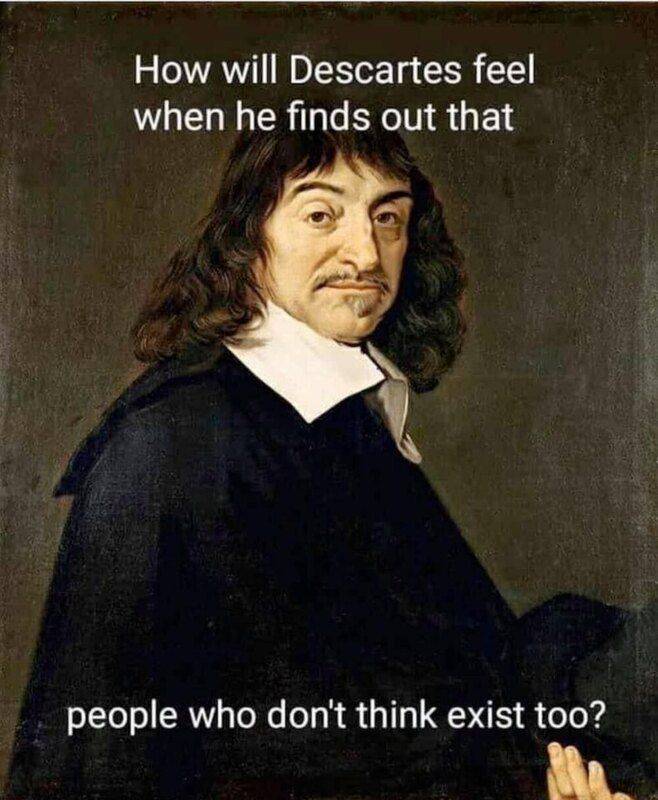 Indifferent, because Descartes certainly knows that A=>B does not imply B=>A.