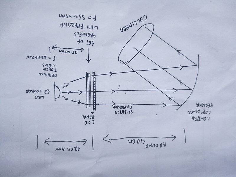 Questions is: Maybe I'm putting the lens in the wrong side of the display - in order to get a collimated image from it do I actually have to pass already collimated light through the display (replace the display backlight with a collimated light source) or is it somehow possible to collimate the image coming out from it (it's shown this way on all schematics of collimated displays/collimators I've been able to find)?