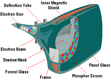 We are all saying that an electron beam traveling in a vacuum does not give off a color of visible light. The energy from the accelerated e-beam can be transferred to phosphor or to gas molecules to cause visible light to be given off.shivanshu said:I still can't understand please be more explanatory...