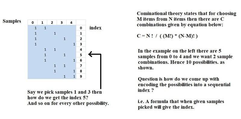 My question is given a chosen sample combination can we come up with a formulae that can map it to its index value ??