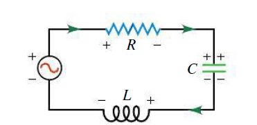 The circuit in question is simply a RLC serie circuit in the order of AC source -> Resistor -> Capacitor -> Inductor -> back to AC source.