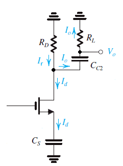 The discussion revolves around the low-frequency response of a common source amplifier, specifically focusing on the role of the coupling capacitor Cs in the current divider analysis.
