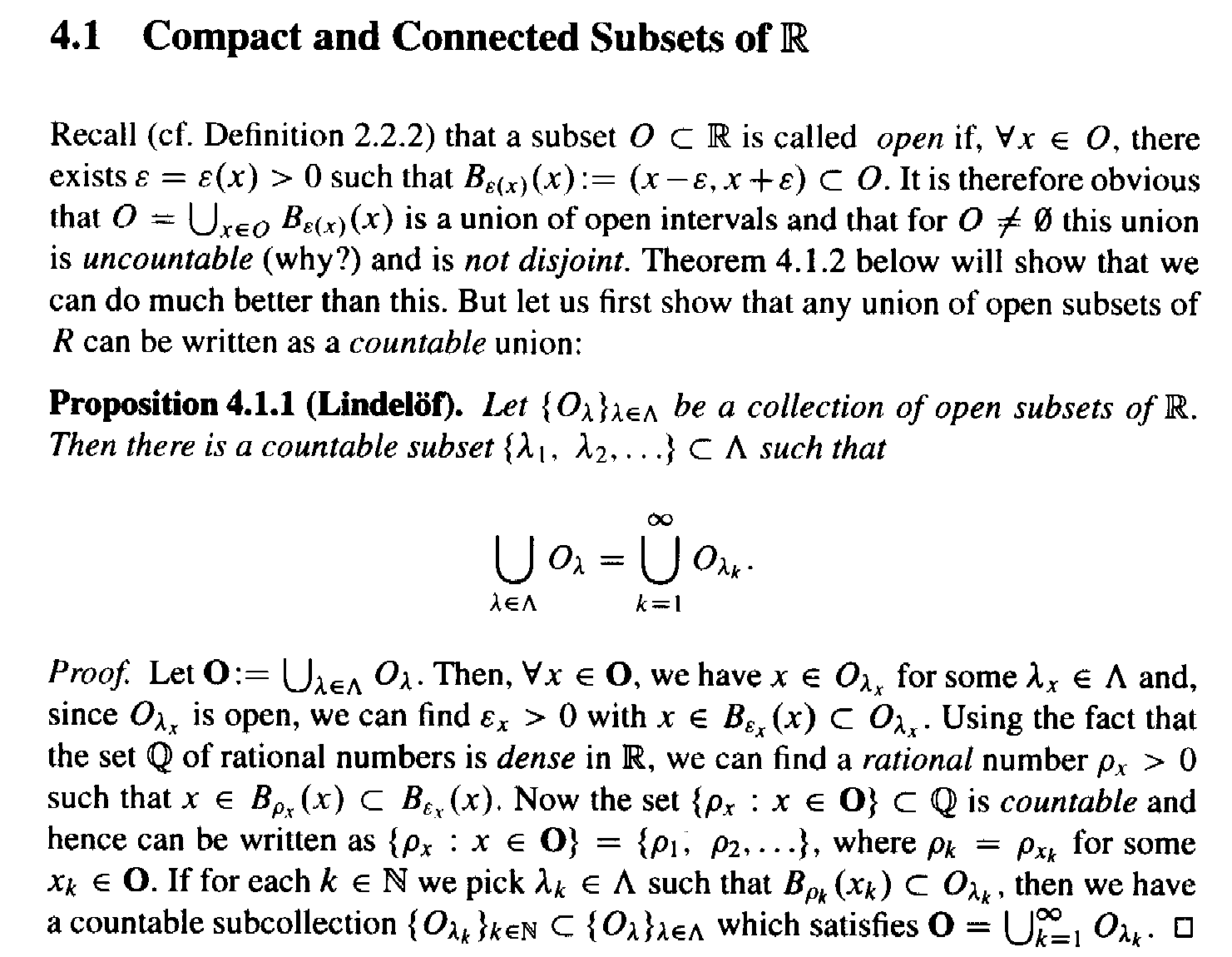 " ... ... If for each $$k \in \mathbb{N}$$ we pick $$\lambda_k \in B_{ \rho_k } (x_k) \subset O_{ \lambda_k }$$, then we have a countable subcollection $$\{ O_{ \lambda_k } \}_{ k \in \mathbb{N} } \subset \{ O_\lambda \}_{ \lambda \in \Lambda }$$ which satisfies $$O = \bigcup_{ k = 1 }^{ \infty } O_{ \lambda_k }$$ ... ..."Can someone please explain/demonstrate clearly (preferably in some detail) how the process described actually results in a countable subcollection where $$O = \bigcup_{ k = 1 }^{ \infty } O_{ \lambda_k }$$ ...
