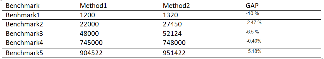 However I have an optimization problem (minimization problem), and the table (attached fill) represents a comparative study between the results of two methods, the first one performed better than the second one and to quantify the effectiveness of the first method we computed the gap which equal to: